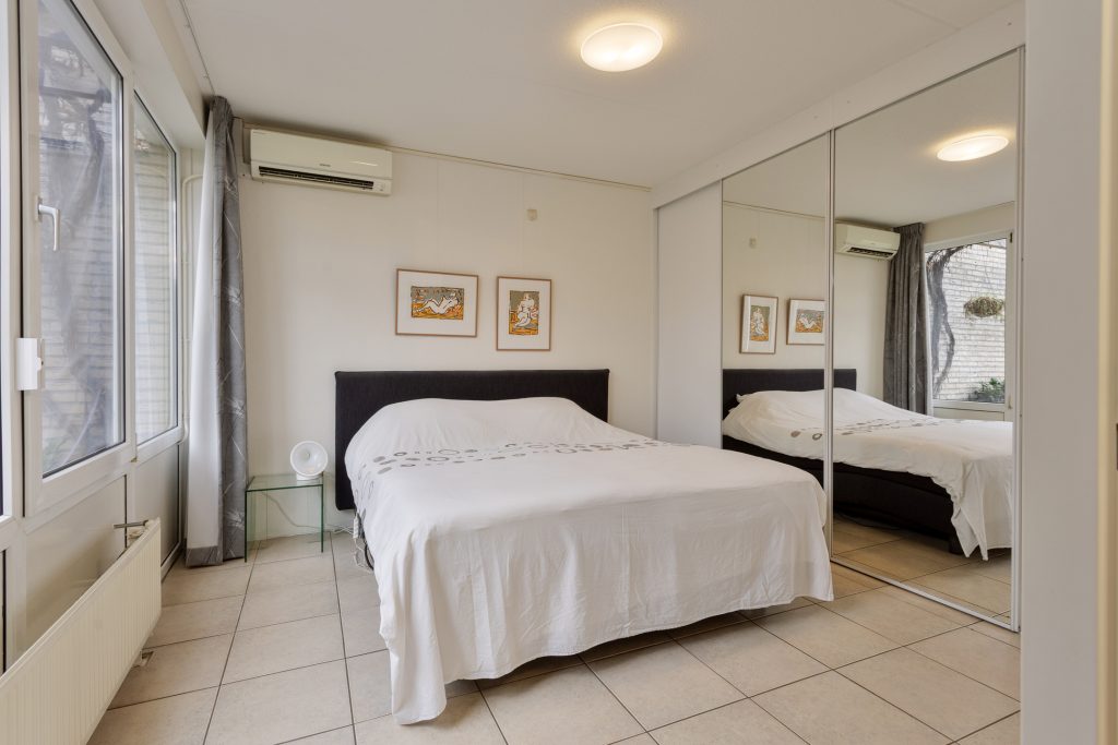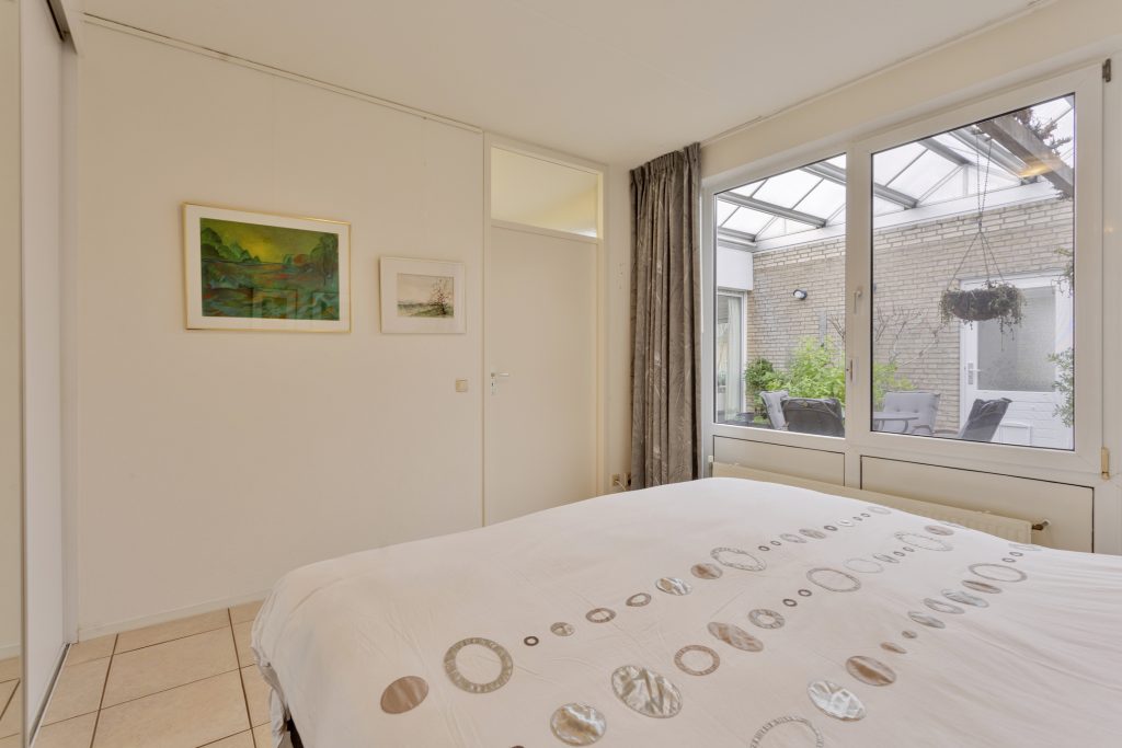 Beide slaapkamers hebben uitzicht op de patio en profiteren van veel natuurlijk licht.
